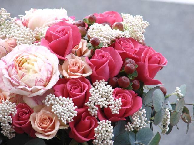 春に生まれた方だそうで、春のお花でイッパイにしました。