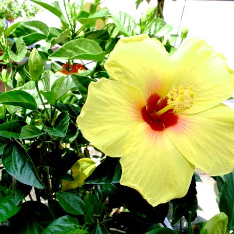 どの家もハイビスカス、ブーゲンビリア・・・カラフルなお花が