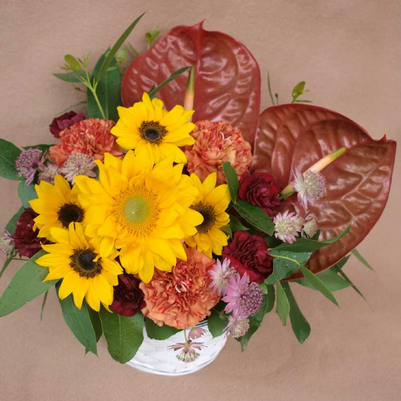 あんまり考えないで、そのとき出会ったお花でつくろう〜と決めてました。